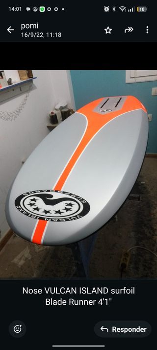 Tabla de surf foil en carbono de alta calidad y shape con acabados excelentes. No made in Thailand....!!! Diseño a conciencia made in Europe . Perfecto estado vendo por medidas muy cortas para mí peso - Modelo Blade Runner. - Medidas: 4'2 x 15 x 2.3/4. - Volumen: 30L. - Marca: Vulcan Island Surfboards.