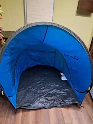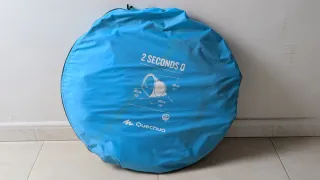 Tienda de campaña Quechua modelo 2 Seconds O, fácil de montar. - Color azul. - Dimensiones desplegada: 145 cm x 105 cm x 110 cm. - Peso: 1 kg.