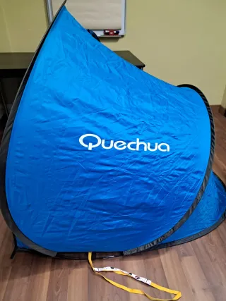 Tienda de campaña azul, ideal para la playa o camping. Fácil de montar, el montaje es instantaneo y facil de transportar, no pesa nada. - Diseño pop-up. - Color azul interior. - Suelo gris