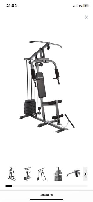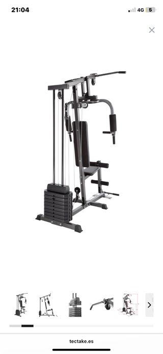 Equipo de gimnasio multifunción para entrenar en casa. - Estructura metálica resistente. - Incluye poleas y pesas. - Asiento acolchado. -160 x 101 x 203 cm