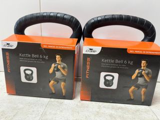 Se venden dos kettlebells de la marca Crane, cada una con un peso de 6 kg. Ideales para entrenar en casa y trabajar diferentes grupos musculares. - Peso: 6 kg por kettlebell. - Marca: Crane. - pesas gym barra mancuernas gimnasio entrenamiento discos pesa rusa