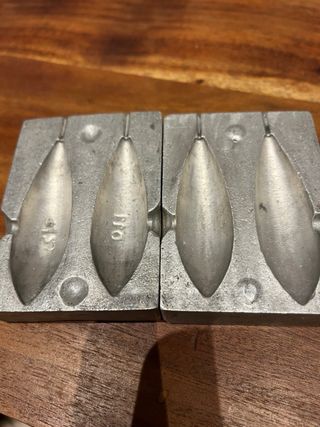 Molde para la fabricación de plomos de pesca. Permite crear plomos con un peso entre 113 y 120 gramos. - Material: Metal. - Diseño: Forma de lágrima. - Cavidades: 2