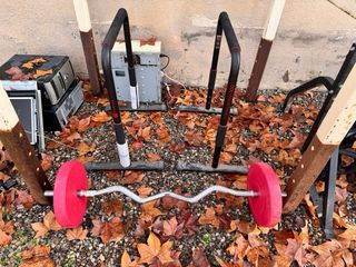 Equipo de gimnasio completo para entrenar en casa. - Banco de entrenamiento. - Juego de pesas con discos. - Barra de curl. Hay 8 discos de 2kgs y 12 discos de 1 kg. Esta todo practicamente nuevo, ya que no se han usado. Se vende el lote completo por 110 euros no negociables. Entrega en mano en toda la provincia de Lleida o Huesca. O recoger en casa. No se envía por el peso.