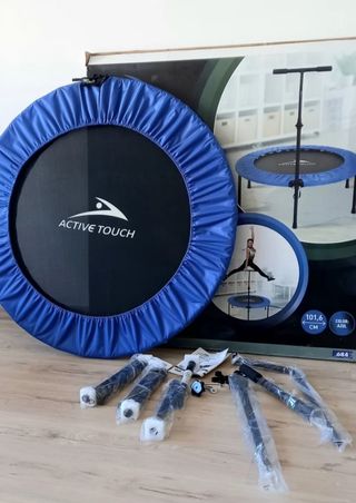 Cama elastica. Excelente estado, esta nueva. En su caja con todos sus accesorios y manual de instrucciones con tabla de ejercicios. * Diametro del bastidor 101, 6cm y 30 * Correas elasticas para mejor entrenamiento * Barra con empuñadura en T, con regulación de altura. * Peso maximo de 100 kg * Es muy estable y libiana al ser de acero * Se monta y desmonta con facilidad Plataforma de salto, jogging, saltar con pesas, deporte, salud, tonificar musculos, ejercitar sin moverse del sitio, ejercicio en casa