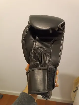 Par de guantes de boxeo de la marca Buddha. - Color negro. - Peso de 14 oz. - Diseño con logo dorado de Buddha Fight Wear.