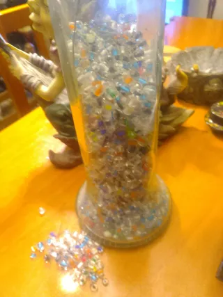 Lote de cristales de colores variados, ideales para proyectos de microfusión o manualidades. - Aproximadamente 1kg de peso. - Diversidad de formas y tonalidades.