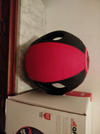 Pelota medicinal de entrenamiento para gym. - Color negro y rojo. - Peso de 8 kg.