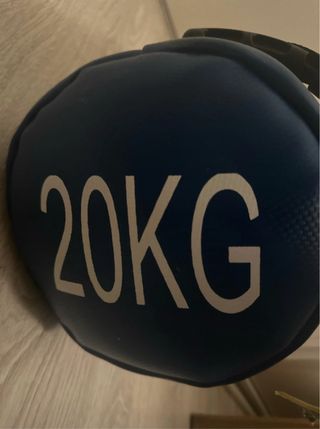Powerbag de 20 kg en color azul y negro. Ideal para entrenamientos funcionales y de fuerza. - Peso: 20 kg. - Color: Azul y negro. - Las asas vienen forradas para realizar distintos ejercicios. - Por razones obvias sólo entrego en mano. - Me costó 69,95€ en Amazon.