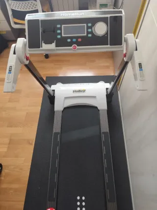 Cinta de correr Halley modelo Home Run 2.0. Muy plegable, en vertical 33 cm y en horizontal 28 cm,cabe en poco espacio. Es un equipo para el hogar con motor de 1.75 CV (pico 3 CV), velocidad hasta 14 km/h, inclinación manual (hasta 12%), soporta 110 kg de peso máximo, y tiene una superficie de carrera de 40x120 cm, con programas predefinidos y función de arranque rápido. Peso Máxim 110 Kg. Superficie de Carrera (Tapiz): 40 x 120 cm Dimensiones (Producto): Ancho 156 cm, Fondo 58 cm, Alto 127 cm (abierta).