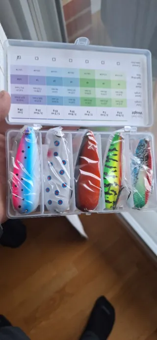 Conjunto de cinco cucharillas de pesca, cada una con un peso de 28 gramos. Todas vienen incluido con anzuelo triple. Diseñadas para la pesca de depredadores.Pesca lucio trucha lucioperca simulo y mucho mas son mejor calidad que las de Decathlon. Palabras clave : caperlan shimano rapada. - Cucharillas de pesca para depredadores. - Peso individual: 28 gramos.
