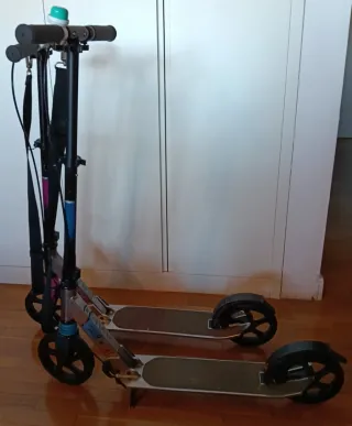 PACK DE 2 PATINETES OXELO MID9 (AZUL Y ROSA) - Para niñ@s (1,25 cm a 1,75 cm) (9 a 14 años) - PACK Ideal Herman@s, Amig@s, Prim@s... - Ligero (5 k) - 2 ruedas grandes (175 mm) - Rodamientos ABEC 5 - Suspensión delantera - Altura ajustable - Sistema de plegado rápido de doble seguridad - Freno en manillar para control de velocidad - Freno en rueda trasera - Aguanta peso hasta 100 k - Están usados pero son muy duros y las ruedas, frenos y demás están en buen estado (Por el precio y el uso que dan los niños, buena oportunidad bajo mi experiencia - Se incluye timbre - PVP: 90€/UNIDAD PACK: 70€/LOS 2 Valoración 4,8 (Decathlon)