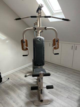 Está como nueva, tiene poco uso. Lo único que se puede decir es que al montarla, a una de las sirgas de las poleas se le abrió un poco el plástico exterior de la siega, se tapó con cinta aislante. No se ve porque es en la arte de arriba y no ha dado ningún problema. Máquina multiestación compact con cargas guiadas Home Gym Corength, para tus sesiones de musculación en casa. Puedes ajustar el peso con cargas guiadas de 5 en 5kg hasta 60kg. Entrenamiento seguro y cómodo en casa. Con este home gym podrás trabajar todos los grupos musculares con total seguridad gracias a las cargas guiadas. Ideal para empezar.