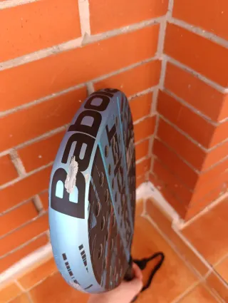 -Pala muy equilibrada con un peso de 367 gramos contando protector y overgrip. -Tiene saltos de pintura y un par de arañazos en los cantos que no afectan nada al juego. - se incluye funda.