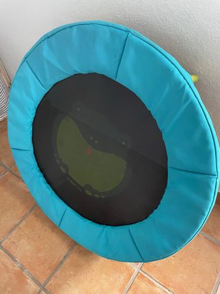 Cama elástica de fitness de 101 cms de diámetro y 80 cms de zona de salto, altura: 21,5 cms, peso: 6,8 Kgs. Garantiza fiabilidad gracias a su estructura de acero con 36 muelles y patas Comprada en Decatlón y solo dos usos. Para principiantes, intensidad media, peso máximo soportado: 100 Kgs. Ideal para desarrollar tonificación resistencia y equilibrio. No envío por tamaño.