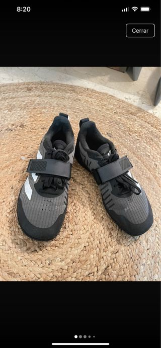 Zapatillas Adidas The Total, 39,50, para levantamiento de pesas. Diseñadas para ofrecer estabilidad y soporte. - Cierre de velcro. - Diseño en gris y negro. - Suela de goma. -drop cero usada en muy pocas ocasiones