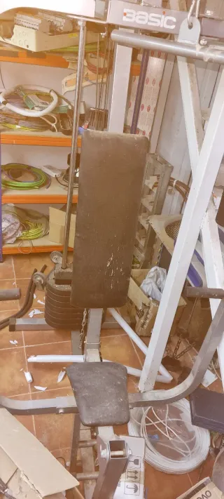 Máquina de ejercicios multifunción de la marca BH. Ideal para entrenar en casa. - Estructura metálica. - Asiento y respaldo acolchados. - Brazos de press y poleas. - Accesorios -Cables nuevos para cambiar