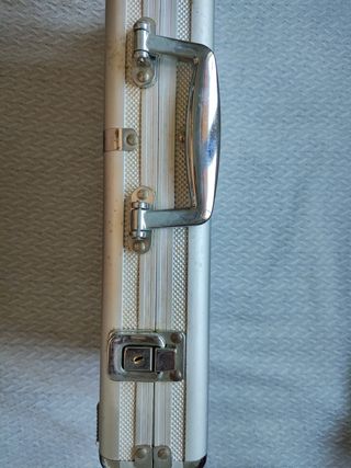 Maletín de póker de aluminio. El interior está en perfectas condiciones, el exterior aunque con pequeñas manchas está en buen estado. Peso 4'6kg. - Fabricado en aluminio. - Asa de transporte integrada. - Cierre de seguridad. No se hacen envíos.