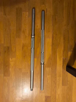 Juego de mancuernas ajustables con discos. 15 kg en cada mancuerna - Discos de peso recubiertos. - Barra con agarre texturizado. Las vendo por falta de uso