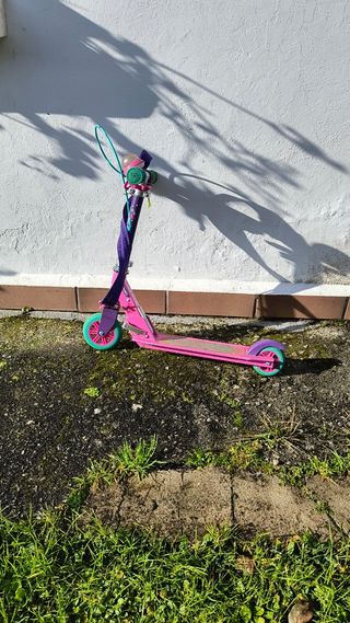 Patinete infantil, para niñ@s de 4 a 6 años (de 95 a 130 cm especifica el fabricante), con freno trasero y en manillar; manillar regulable en altura (sin que sean necesarias herramientas). Plegable, con cinta de transporte. Usado, tiene marcas de uso, pero funciona perfectamente. Pesa 3'28 kilos. Envíos o entrega en mano en Coruña o Pontevedra.