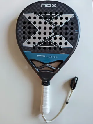 Pala de pádel Nox AT10 12K del año 2024. Solamente usada en dos partidos para probarla. Únicamente tiene dos defectos de pintura que ya venían de fábrica (ver 4° foto) - Peso 354g sin cuerda y un overgrip solo. - Balance 25,8 cm. - Incluye funda y las gomas del custom grip. - Overgrip de regalo