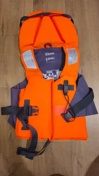 Chaleco salvavidas para niños, diseñado para un peso de entre 30 y 40 kg. Es de color naranja brillante y cuenta con cintas ajustables para un mejor ajuste. - Cierre con hebillas de clip. - Cintas de ajuste. - Material de flotación. Perfecto para deportes náuticos, kayak, paddle surf, piragua,...