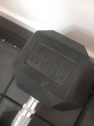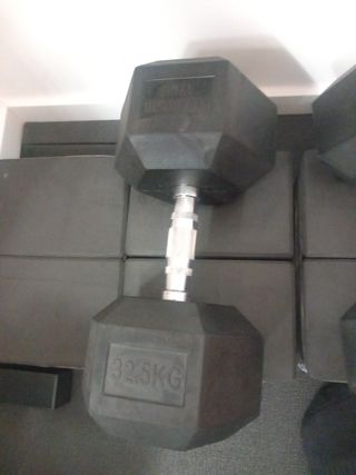 Mancuerna hexagonal de 32.5 kg, ideal para entrenamientos de fuerza. - Peso: 32.5 kg - Diseño hexagonal para mayor estabilidad.