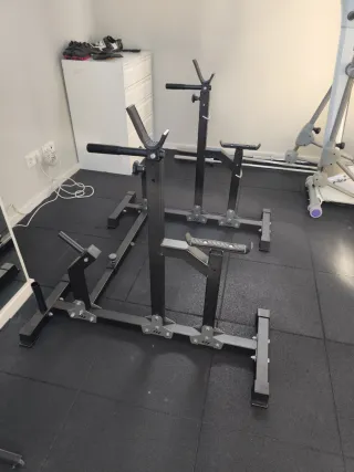 Estructura robusta para entrenamiento de fuerza. - Construcción de acero negro. - Soportes ajustables en altura. - Base estable para mayor seguridad. -
