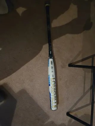 Bate de softball LXT de Louisville Slugger, modelo 2024. - Longitud: 32 pulgadas. - Peso: 22 onzas. - Diseño en blanco con detalles en azul y dorado.