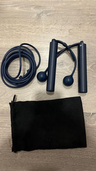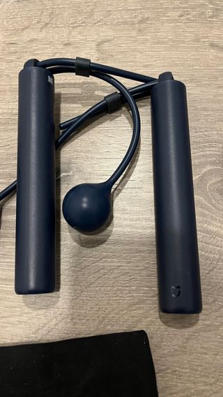 Cuerda de saltar eléctrica Xiaomi con pesas y bolsa de transporte. - Diseño moderno en color azul marino. - Mangos ergonómicos. - Incluye bolsa de tela negra para guardarla.
