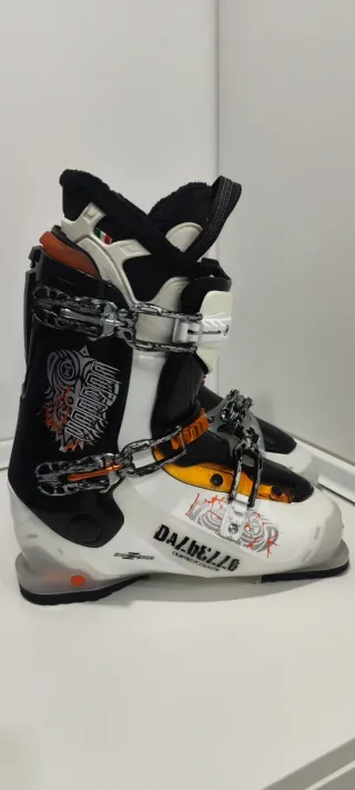 Botas de esquí de la marca Dalbello. Presentan un diseño moderno y llamativo. - Cierre con hebillas. - Detalle de gráficos en los laterales. - Parte superior con forro interior. - Como nuevas (las hebillas son de ese color, no es que esten rozadas ni levantada la pintura) - Talla 28,5 equivalente a un 44 Preferible entrega en mano, para envios contactarme antes de comprar para bajar el peso del articulo, esta puesto como 30kg