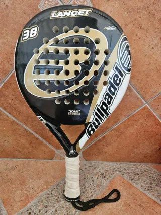 Pala de pádel Bullpadel LANCET con un peso de 38 gramos. Diseño moderno y llamativo. - Pala de pádel Bullpadel LANCET. - Peso: 38 gramos. - Material: Fibra de vidrio Toray.