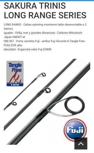 Caña de pescar Sakura Trinis Long Range Spin 712 MH. - Medida: 2.16 metros - Peso de lance: 15-50 gramos. - Peso de la caña: 158 gramos - Modelo: 712MH (1 tramo, desmontable por el talón) - Para embarcaciones va genial.