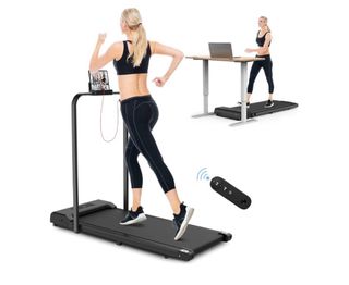 Cinta de Correr Plegable 2 en 1-10 km/h, 43x110 cm; Cinta Eléctrica Debajo del Escritorio, 3.0HP, Peso Máximo 150 kg; Pantalla LCD y Control Remoto para Hogar y Oficina (Negro)