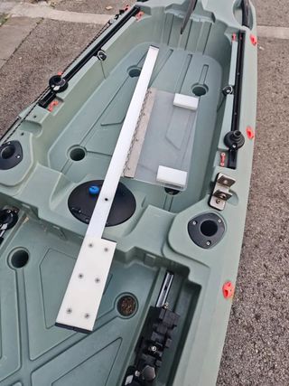 Fabricado con materiales calidad: anclajes y tornillería en acero inoxidable, barra de aluminio de 4mm y balda portabaterías en policarbonato con bisagra inox. Todo pensado para aguantar la vida en el agua de verdad. ¿Lo mejor? La jaula sujeta la batería incluso si vuelcas. Nada de sustos, nada de que se mueva con el vaivén. Tu batería va a estar más segura que tú 😄 Algunos datos que te van a gustar: ⚖️ Solo 4 kg de peso total 💪 Aguanta más de 25 kg o 300 Ah 🔩 Universal, compatible con la mayoría de kayaks ⚡ Se monta y desmonta en la misma jornada con solo 3 tornillos — o lo dejas fijo, tú decides Llevar batería con garantías