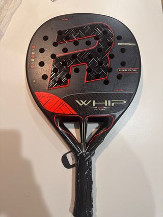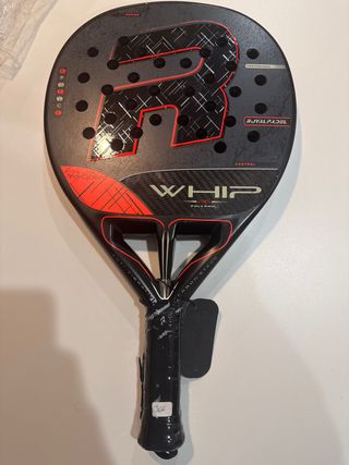 Pala de pádel Royal Padel modelo Whip 2026, nueva precintada. - Pala de pádel con núcleo de polietileno. - Diseño profesional. - Acabado en negro con detalles rojos y blancos. - Incluye sistema antivibración. - peso 366