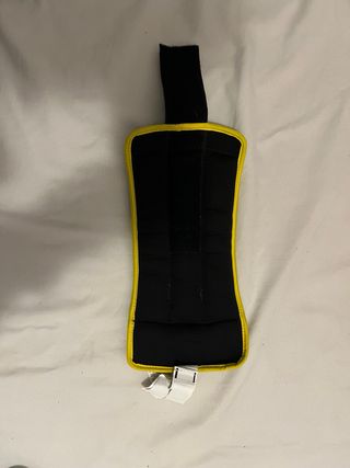 Par de tobilleras Domyos de 1kg cada una. - Color negro con detalles en amarillo. - Cierre de velcro ajustable. - Peso: 1kg (2.2 lbs) por tobillera.