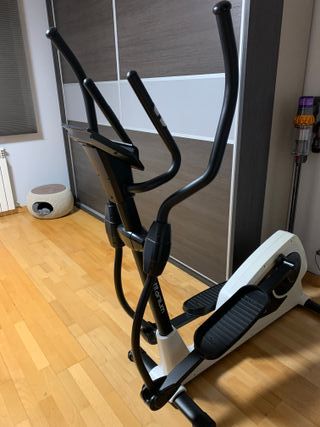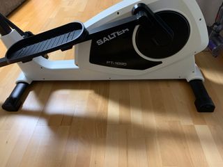 Elíptica Salter Titanium PT1695 en buen estado. Elíptica Salter Titanium PT1695 Entrenar en casa de forma cómoda y segura. Estructura estable, Pedales anchos y antideslizantes, Brazos oscilantes, Freno magnético, silencioso y sin mantenimiento, Medición de pulso en manillar, Monitor LCD: tiempo, velocidad, distancia, calorías, pulso y rpm, 12 programas preestablecidos, 16 niveles de resistencia y 4 personalizables, Soporte para móvil/tableta y USB para cargar, Portabotellas, ruedas y estabilizadores Dimensiones: 162x52x169 cm. Peso:58 kg. Soporta 130 kg Salter es una marca reconocida por tener modelos de alta calidad y durabilidad.