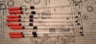 REBAJAS. VENTA LOTE COMPLETO 1.-FLOTADORES marca Jenzzi transparentes de 2 gramos y 21 cm. 2.-FLOTADORES MADERA COLOR NEGRO CON pesos 4+1 Gramos y 29 cm (4 unidades) y 3+1 Gramos y 26 cm (8 unidades). 3.-Flotadores de madera de balsa de precisión Dos modelos distintos y con varios gramajes. ** Flotador color negro y azul de 1gr (8 unidades) **Color negro y azul de 2gr (3 unidades) **Flotador color naranja y negro de 1,5gr (3 unidades)