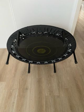 FIT TRAMPO 100 este trampolín Essential 100 para mantenerte en forma y tonificar tu cuerpo en casa. El trampolín de interior es una actividad lúdica y muy completa. ¡Combina el trabajo cardiorrespiratorio, la tonificación y el equilibrio! COMPOSICIÓN Estructura // Chasis (para los rollers): 100% acero Tejido interior: 100% polipropileno. Parte exterior - Tejido principal : 100.0% Poliéster max peso 100kg