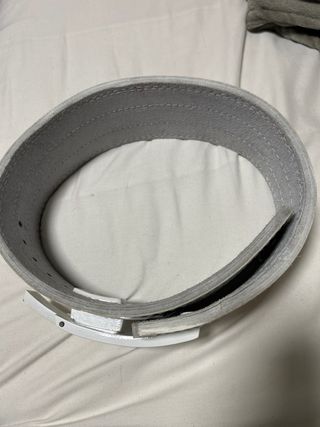 Cinturón de powerlifting blanco, ajustable para levantamiento de pesas. - Marca: JAYEFITNESS - Material: Cuero - Cierre: Hebilla de metal