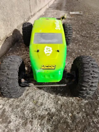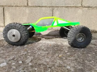 Vehículo tipo crawler a escala 1/10, diseñado para competición. Chasis artesanal con eje delantero element con servo al eje y eje trassero traxxss con bloqueo de diferencual. Transmision grind 328 Amirtiguadores delanteros element y traseros proline proexpect. Los pesos de las ruedas delanteras y el receptor no estan incluifos en el precio