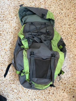 Mochila de trekking Quechua, de 60L. Es un modelo robusto y muy cómodo, ideal para viajes de larga duración, rutas de montaña de varios días o para viajar como mochilero. - Capacidad: 60 litros, lo que permite llevar todo el equipamiento necesario para viajes largos. - Comodidad: El sistema de espalda es muy cómodo y ventilado, con tirantes y cinturón lumbar acolchados y ajustables para una óptima distribución del peso. - Compartimentos: Cuenta con varios bolsillos y compartimentos internos y externos para una organización eficiente. -Color: Gris y Verde.