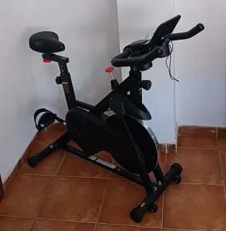 Bicicleta estática de color negro, ideal para entrenar en casa. - Diseño robusto y estable. - Asiento ajustable. - Manillar ergonómico. - Aguanta 136kg -Pantalla LCD -Seguimiento de datos en la APP -Peso 19kgs