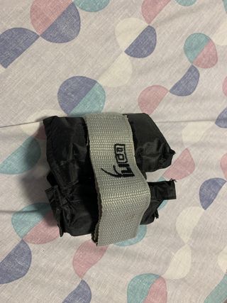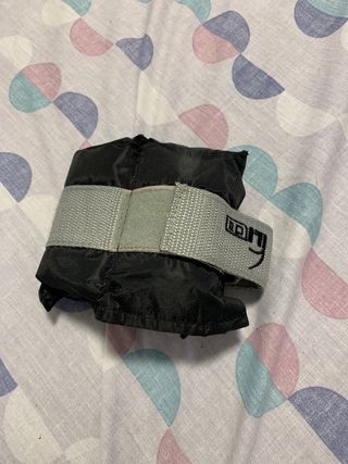Se venden dos tobilleras de la marca Domyos. Son de color negro y verde azulado. Están en buen estado. - Peso: 0.5 kg cada una - Ideales para ejercicios de tobillos y piernas.