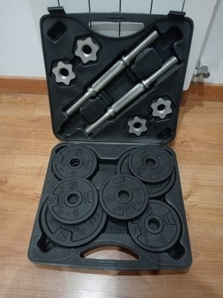 Kit de pesas de 20 kg (44 lbs) para entrenamiento en casa. - Incluye maletín de transporte. - Ideal para Body Training.