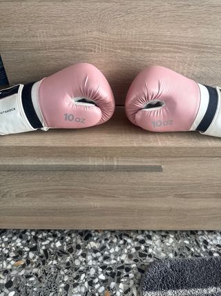Par de guantes de boxeo en color rosa, perfectos para entrenamiento. - Cierre de velcro. - Peso de 10 oz. - Diseño con detalles en blanco y negro.