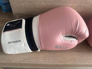 Guantes de boxeo de la marca Outshock, con un peso de 10 onzas. Diseñados en color negro y blanco. - Cierre de velcro para un ajuste seguro. - Logo de la marca visible en la parte superior. - Muñequera integrada para mayor soporte.