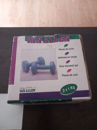 Set de pesas de vinilo de la marca Van Allen. - Cada pesa pesa 1 Kg. - Diseño en color azul.
