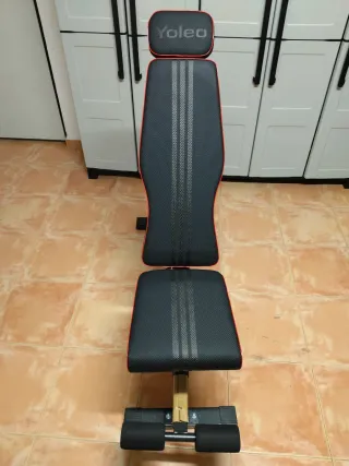 Banco de entrenamiento. SIN ESTRENAR. Lo he montado para ver que todo está ok. -10 niveles de ajuste del respaldo y 3 del asiento. -Robusto y estable. -Muy cómodo de usar en el cambio de posiciones. -El reposacabezas lo hace ideal para personas altas.