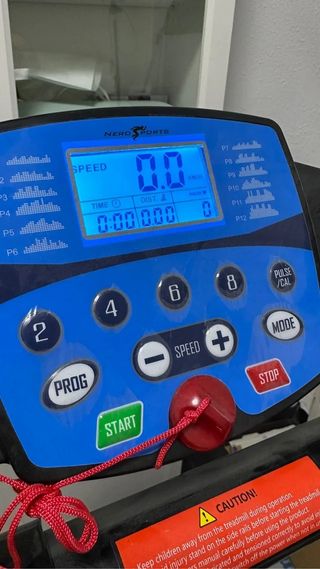Cinta de andar, ideal para entrenar en casa. Es plegable para facilitar su almacenamiento. - Pantalla LCD con información de velocidad, tiempo y distancia. - Botones de acceso rápido para programas y velocidad. - Incluye sistema de seguridad con llave magnética. Cinta de andar plegable con bluetooth con la app Kinomap. La vendo por mudanza, está nueva solo con un par de usos, tiene aún los plásticos. -Superficie de cinta: 1050 mm x 350 mm -Dimensiones plegada: 680 mm x 600 mm x 1200 mm -Dimensiones abierta: 1260 mm x 600 mm x 1200 mm -Peso neto 24 kg -Peso máximo del usuario 110 kg